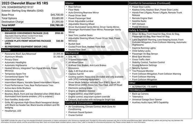 Elevate your driving experience with this 2023 Chevrolet Blazer RS. Boasting a powerful 3.6L V6 SIDI engine, paired with a 9-Speed Automatic transmission and All-Wheel Drive, this SUV delivers exceptional performance and versatility. Enjoy an impressive EPA-estimated 19 MPG in the city and 26 MPG on the highway, making it a practical choice for your daily commute and weekend adventures.