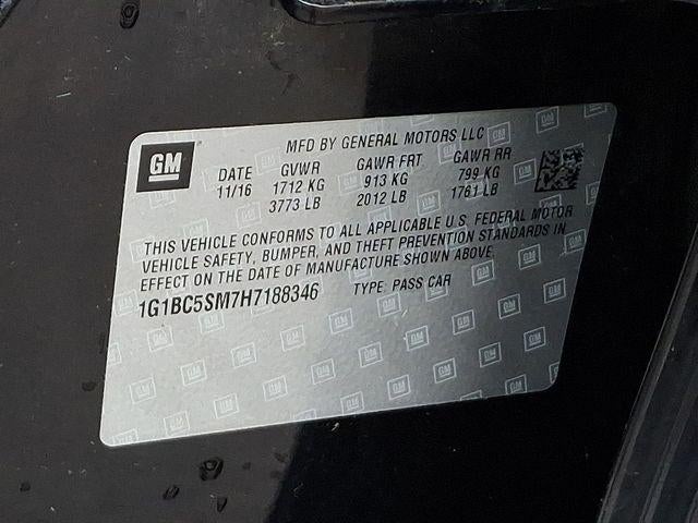Discover the perfect blend of style, efficiency, and technology in this 2017 Chevrolet Cruze LS. This sleek and modern sedan is designed to elevate your driving experience, offering a compelling combination of performance, comfort, and convenience.Boasting a striking Black exterior, this Cruze LS is more than just a pretty face. Under the hood, you'll find a powerful 1.4L 4-Cylinder Turbo DOHC CVVT engine paired with a smooth-shifting 6-Speed Automatic transmission, delivering an impressive 30 city / 40 highway mpg. Whether you're navigating the daily commute or embarking on a weekend getaway, this Cruze LS will provide the efficiency and responsiveness you demand.- License Plate Bracket, Front- Front and Rear Splash Guards, Custom MoldedThe thoughtfully designed interior of this Cruze LS is both stylish and functional. Slip into the supportive Cloth Seat Trim and take advantage of features like the Chevrolet MyLink infotainment system with a 7-inch touchscreen, Apple CarPlay/Android Auto, and a 4-Speaker Audio System. Stay connected and entertained on the go, all while enjoying the comfort of the climate-controlled cabin.Safety is of the utmost importance, and this Cruze LS delivers with a comprehensive suite of advanced features. Enjoy the peace of mind of Dual Front Impact Airbags, Dual Front Side Impact Airbags, Overhead Airbag, Knee Airbag, and Occupant Sensing Airbag. The Rear Vision Camera and Electronic Stability Control further enhance your confidence behind the wheel.Discover the perfect balance of style, efficiency, and technology in this 2017 Chevrolet Cruze LS. With its impressive performance, thoughtful amenities, and comprehensive safety features, this sedan is poised to elevate your driving experience. Visit our showroom today and let us demonstrate how this Cruze LS can exceed your expectations.This vehicle is being sold with Buyer's Guide Coverage. Ingersoll Automotive will provide a vehicle inspection and reconditioning form, a vehicle Carfax, and coverage through the FTC buyers guide as outlined.Do not hesitate, call us now at 860.945.4755 to speak with our guest friendly product consultants to schedule your test drive.Pre-Owned Vehicle Prices do not include government fees and taxes, any finance charges, $997 dealer documentation fees (Pawling Conveyance Fee capped at $175 per NY Law), any emissions testing fees or other fees. All prices, specifications and availability are subject to change without notice. The features and options listed are provided by a 3rd party organization and may not apply to this specific vehicle. Contact dealer for most current information. Not responsible for typographic errors.