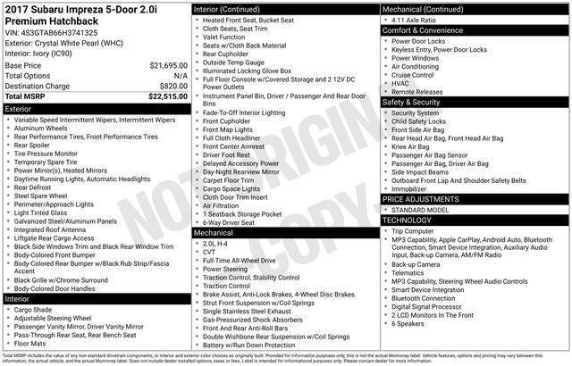 At our dealership, we take pride in offering our customers exceptional vehicles that deliver both value and satisfaction. The 2017 Subaru Impreza 2.0i Premium is a testament to Subaru's commitment to quality, and we're confident that it will exceed your expectations.