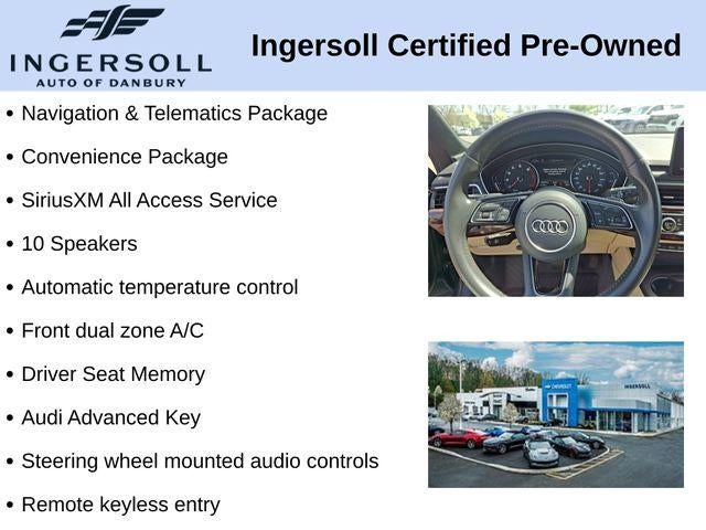 Discover the exceptional 2018 Audi A5 2.0T Premium quattro, a captivating blend of style, performance, and cutting-edge technology. This stunning Blue coupe is a true testament to Audi's commitment to engineering excellence.- Heated front seats- Dark Brown Walnut Wood High Gloss Inlays- Audi Guard Protection Kit- Rings Audi Beam lower door trim LED light- Convenience Package with Alarm System, SiriusXM, Heated Auto-Dimming Power/Memory Exterior Mirrors, and Audi Advanced KeyPowered by a 2.0L 4-Cylinder TFSI engine and equipped with a 7-Speed Automatic S tronic transmission and quattro all-wheel drive, this A5 delivers an exhilarating driving experience. With an impressive 24 City / 34 Highway MPG, you'll enjoy exceptional efficiency and a confident, responsive ride.Step inside and be enveloped in the luxurious Leather Seating Surfaces, complemented by the Dark Brown Walnut Wood High Gloss Inlays that add a touch of refined elegance. The Audi Sound System and SiriusXM All Access Service provide a premium audio experience, while the Audi Advanced Key and Convenience Package ensure unparalleled comfort and convenience.Safety is paramount, and this A5 is equipped with a suite of advanced features, including Dual Front Impact Airbags, Dual Front Side Impact Airbags, Knee Airbag, Overhead Airbag, and Occupant Sensing Airbag. The Rear View Camera and Four Wheel Disc Brakes with ABS provide added peace of mind.Elevate your driving experience with the 2018 Audi A5 2.0T Premium quattro. Schedule a test drive today and discover the exceptional craftsmanship and performance that make this Audi a true standout in its class.This vehicle is being sold as Ingersoll Certified Pre-Owned. This program gives you piece of mind. You will receive. **A Vehicle Inspection and Reconditioning Form. **A Vehicle Carfax. **90 Days or 3000 miles of Powertrain Plus Limited Coverage **A Free Maintenance event including oil change and tire rotation within the first 12mo or 12,000 miles of driving (at an Ingersoll Automotive Location) This is not a manufacturer sponsored program.Do not hesitate, call us now at 860.945.4755 to speak with our guest friendly product consultants to schedule your test drive.Pre-Owned Vehicle Prices do not include government fees and taxes, any finance charges, $997 dealer documentation fees (Pawling Conveyance Fee capped at $175 per NY Law), any emissions testing fees or other fees. All prices, specifications and availability are subject to change without notice. The features and options listed are provided by a 3rd party organization and may not apply to this specific vehicle. Contact dealer for most current information. Not responsible for typographic errors.