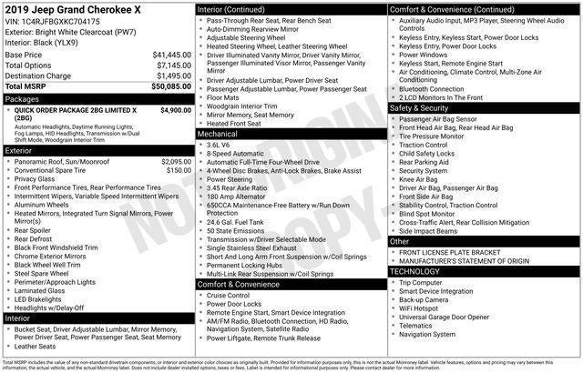 Powered by a robust 3.6L V6 engine and equipped with an 8-speed automatic transmission, the 2019 Jeep Grand Cherokee Limited X delivers an exceptional driving experience. With its impressive 4WD capability and 25 highway MPG, this SUV is ready to take on any adventure, whether it's conquering the open road or tackling the great outdoors.