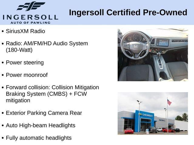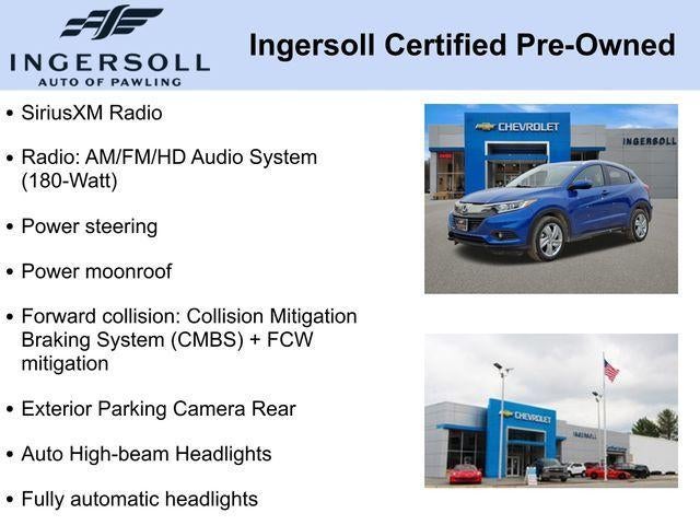 Priced below KBB Fair Purchase Price! Odometer is 16310 miles below market average! Clean CARFAX.Apple CarPlay/Android Auto, Auto High-beam Headlights, Exterior Parking Camera Rear, Forward collision: Collision Mitigation Braking System (CMBS) + FCW mitigation, Fully automatic headlights, Heated door mirrors, Heated Front Bucket Seats, Power moonroof, Power steering, Radio: AM/FM/HD Audio System (180-Watt), SiriusXM Radio, Wheels: 17 Unique Silver-Painted Alloy.Blue 2020 Honda HR-V EX 4D Sport Utility AWD 1.8L I4 SOHC 16V i-VTEC CVTCertification Program Details: This vehicle is being sold as Ingersoll Certified Pre-Owned. This program gives you piece of mind. You will receive. **A Vehicle Inspection and Reconditioning Form. **A Vehicle Carfax. **90 Days or 4000 miles of Powertrain Plus Limited Coverage **A Free Maintenance event including oil change and tire rotation within the first 12mo or 12,000 miles of driving (at an Ingersoll Automotive Location) This is not a manufacturer sponsored program.Do not hesitate, call us now at 845.878.6900 to speak with our guest friendly product consultants to schedule your test drive.Pre-Owned Vehicle Prices do not include government fees and taxes, any finance charges, $175 dealer documentation fees (Danbury and Watertown Conveyance Fee at $997), any emissions testing fees or other fees. All prices, specifications and availability are subject to change without notice. The features and options listed are provided by a 3rd party organization and may not apply to this specific vehicle. Contact dealer for most current information. Not responsible for typographic errors.