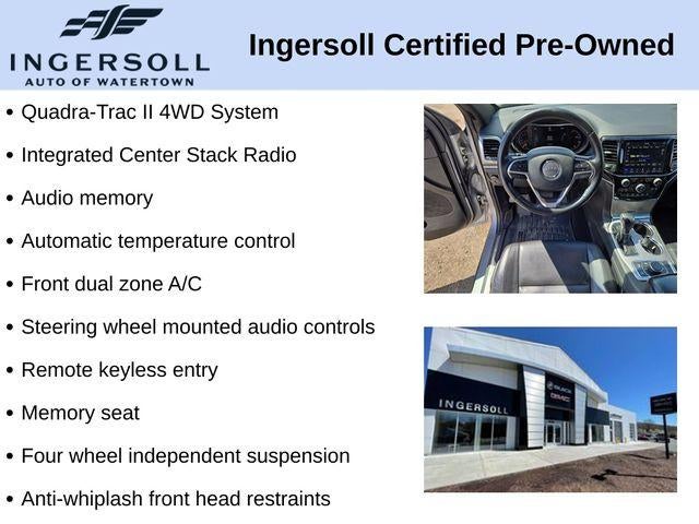 Discover the perfect blend of power, capability, and sophistication in the 2020 Jeep Grand Cherokee Limited. This exceptional SUV is ready to elevate your driving experience and take you on unforgettable adventures.Equipped with a robust 3.6L V6 24V VVT engine and an 8-speed automatic transmission, the Grand Cherokee Limited delivers impressive performance and efficiency, achieving an impressive 18 city/25 highway MPG. The Quadra-Trac II 4WD system ensures you'll conquer any terrain with confidence, whether tackling challenging off-road conditions or navigating through inclement weather.Key features of this Grand Cherokee Limited include:- GPS Navigation- Quick Order Package 2BH- Quadra-Trac II 4WD System- Power Liftgate- Selec-Terrain System- Engine Oil Cooler- 8.4 Touchscreen Display- Apple CarPlay/Android Auto- Heated Steering Wheel- Leather-Trimmed Bucket Seats- Power Passenger Seat- 18 Tech Gray Diamond Cut WheelsDressed in a stunning Billet Silver Metallic Clearcoat exterior, this Grand Cherokee Limited exudes a refined and sophisticated presence. The spacious and well-appointed cabin offers a wealth of comfort and convenience features, ensuring a truly premium driving experience.Safety is of the utmost importance, and the Grand Cherokee Limited delivers with an array of advanced driver-assistance technologies, including ParkView Rear Back-Up Camera, Electronic Stability Control, and a comprehensive airbag system.Whether you're seeking a capable and versatile SUV for your daily commute or a rugged companion for your next outdoor adventure, the 2020 Jeep Grand Cherokee Limited is the perfect choice. Experience the perfect blend of power, technology, and style – schedule a test drive today and discover why this Grand Cherokee is the ultimate choice.This vehicle is being sold as Ingersoll Certified Pre-Owned. This program gives you piece of mind. You will receive. **A Vehicle Inspection and Reconditioning Form. **A Vehicle Carfax. **90 Days or 3000 miles of Powertrain Plus Limited Coverage **A Free Maintenance event including oil change and tire rotation within the first 12mo or 12,000 miles of driving (at an Ingersoll Automotive Location) This is not a manufacturer sponsored program.Do not hesitate, call us now at 860.945.4755 to speak with our guest friendly product consultants to schedule your test drive.Pre-Owned Vehicle Prices do not include government fees and taxes, any finance charges, $997 dealer documentation fees (Pawling Conveyance Fee capped at $175 per NY Law), any emissions testing fees or other fees. All prices, specifications and availability are subject to change without notice. The features and options listed are provided by a 3rd party organization and may not apply to this specific vehicle. Contact dealer for most current information. Not responsible for typographic errors.