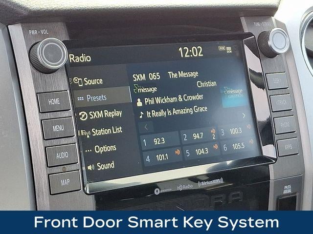 The Tundra's impressive array of features doesn't stop there. Enjoy the convenience of keyless entry, push-button start, and remote connectivity, allowing you to control various functions right from your compatible smart device. Stay connected with the premium audio system, complete with SiriusXM radio and dynamic navigation.