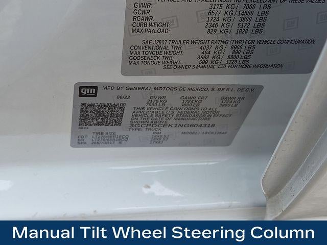10-Way Power Driver Seat w/Lumbar, 120-Volt Instrument Panel Power Outlet, 220 Amp Alternator, 3.5 Monochromatic Display Driver Info Center, 6-Speaker Audio System, Apple CarPlay/Android Auto, Auto High-beam Headlights, Auto-Locking Rear Differential, Black Name Plates (LPO), Black Tailgate CHEVROLET Lettering (LPO), Bluetooth® For Phone, Chevytec Spray-On Black Bedliner, Color-Keyed Carpeting Floor Covering, Compass, Custom Convenience Package, Dark Essentials Package (LPO), Deep-Tinted Glass, Dual Rear USB Ports (Charge Only), Electric Rear-Window Defogger, Electrical Steering Column Lock, Electronic Cruise Control, EZ Lift Power Lock & Release Tailgate, Front Rubberized Vinyl Floor Mats, HD Rear Vision Camera, Heated door mirrors, Heavy-Duty Air Filter, Hill Descent Control, IntelliBeam Automatic High Beam On/Off, LED Cargo Area Lighting, Manual Tilt Wheel Steering Column, OnStar & Chevrolet Connected Services Capable, Performance Red Recovery Hooks, Power Front Windows w/Driver Express Up/Down, Power Front Windows w/Passenger Express Down, Power Rear Windows w/Express Down, Preferred Equipment Group 2CX, Premium audio system: Chevrolet Infotainment 3, Radio: Chevrolet Infotainment 3 System, Rear 60/40 Folding Bench Seat (Folds Up), Rear Rubberized-Vinyl Floor Mats, Remote Keyless Entry, Remote Vehicle Starter System, SiriusXM Radio, Standard Tailgate, Suspension Package, Theft Deterrent System (Unauthorized Entry), Trailering Package, Wheels: 18 x 8.5 Black Painted Aluminum, Wireless Phone Projection.