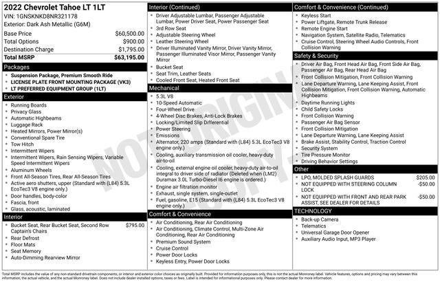 Whether you're embarking on a family adventure, towing a trailer, or navigating the daily commute, the 2022 Chevrolet Tahoe LT is the ultimate SUV. Experience the perfect blend of capability, comfort, and technology that will elevate your driving experience to new heights.