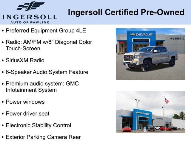 Odometer is 18806 miles below market average! CARFAX One-Owner. Clean CARFAX.6-Speaker Audio System Feature, Apple CarPlay/Android Auto, Driver vanity mirror, Electronic Stability Control, Exterior Parking Camera Rear, Front Bucket Seats, Hitch Guidance, Power driver seat, Power windows, Preferred Equipment Group 4LE, Premium audio system: GMC Infotainment System, Radio: AM/FM w/8 Diagonal Color Touch-Screen, SiriusXM Radio, Tow/Haul Mode, Wheels: 18 x 8.5 Black Painted Aluminum.Tan 2022 GMC Canyon Elevation 4D Crew Cab 4WD V6 8-Speed AutomaticCertification Program Details: This vehicle is being sold as Ingersoll Certified Pre-Owned. This program gives you piece of mind. You will receive. **A Vehicle Inspection and Reconditioning Form. **A Vehicle Carfax. **90 Days or 4000 miles of Powertrain Plus Limited Coverage **A Free Maintenance event including oil change and tire rotation within the first 12mo or 12,000 miles of driving (at an Ingersoll Automotive Location). This vehicle is eligible to be upgraded to Ingersoll Certified Plus for $749. That will give you the additional benefits of 12mo or 12,000 miles of limited exclusionary coverage, 6 years or up to 100,000 miles of powertrain limited coverage (from original in-service date), courtesy transportation for covered repairs, and road side assistance. **A Vehicle Exchange Program if dissatisfied in the first 3 days or 150 miles of ownership. This is not a manufacturer sponsored programDo not hesitate, call us now at 845.878.6900 to speak with our guest friendly product consultants to schedule your test drive.Pre-Owned Vehicle Prices do not include government fees and taxes, any finance charges, $175 dealer documentation fees (Danbury and Watertown Conveyance Fee at $997), any emissions testing fees or other fees. All prices, specifications and availability are subject to change without notice. The features and options listed are provided by a 3rd party organization and may not apply to this specific vehicle. Contact dealer for most current information. Not responsible for typographic errors.