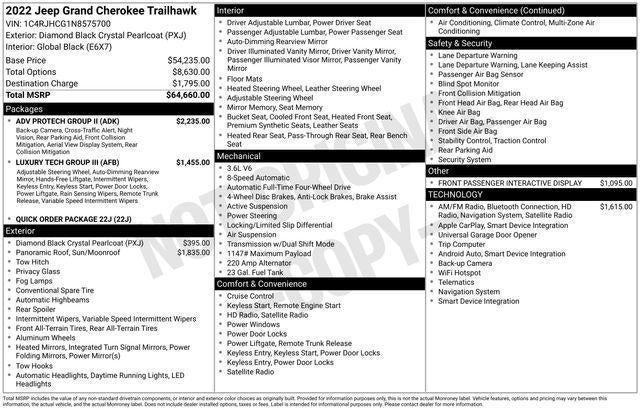 The 2022 Jeep Grand Cherokee Trailhawk is a true masterpiece of engineering, designed to elevate your driving experience. With its impressive suite of advanced safety and convenience features, this SUV offers unparalleled peace of mind and a level of sophistication that is sure to impress.