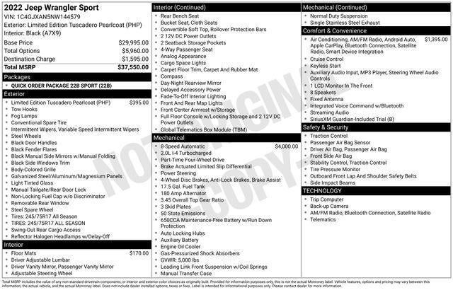 Whether you're embarking on off-road excursions, navigating the city, or simply seeking a vehicle that can keep up with your active lifestyle, this 2022 Jeep Wrangler Sport is the perfect choice. Experience the thrill of driving a true icon of the road and schedule a test drive today. We're confident you'll be impressed by the Wrangler's capabilities and the exceptional value it offers.