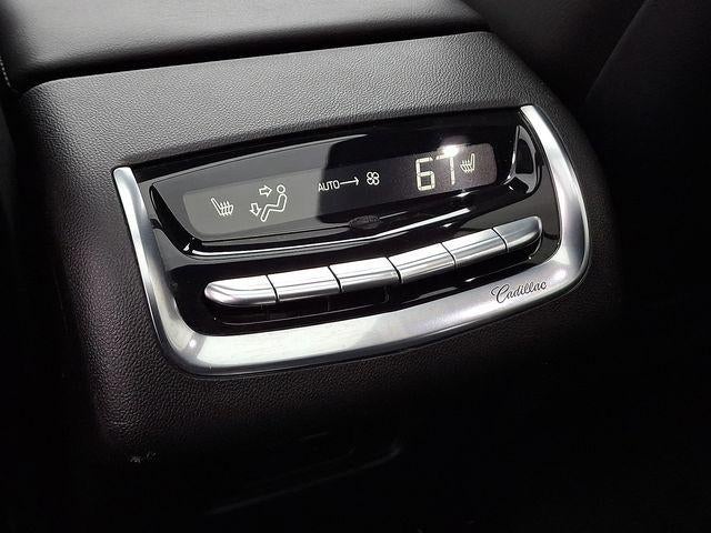 - Opens or closes when the system senses the key fob and the driver extends their foot under the left-hand side of the rear bumper over an image of the Cadillac Crest projected under the vehicle