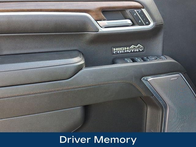 10-Way Power Driver Seat w/Lumbar, 10-Way Power Passenger Seat Adjuster w/Lumbar, 12.3 Multicolor Reconfigurable Digital Display, 120-Volt Instrument Panel Power Outlet, 15 Diagonal Multicolor Head-Up Display, 2 USB Data Ports, 2nd Row Heated Outboard Seats, Adaptive Cruise Control, Adaptive Ride Control Suspension, All-Weather Floor Liner (LPO), Apple CarPlay/Android Auto, Auto High-beam Headlights, Auto-Dimming Inside Rear-View Mirror, Auto-Locking Rear Differential, Bed View Camera, Bluetooth® For Phone, Body-Color Painted Mirror Caps, Chevytec Spray-On Black Bedliner, Chrome Assist Steps, Chrome Recovery Hooks, Color-Keyed Carpeting Floor Covering, Compass, Deep-Tinted Glass, Driver Memory, Dual Exhaust w/Polished Outlets, Dual Rear USB Ports (Charge Only), Electric Rear-Window Defogger, Electrical Steering Column Lock, Electronic Cruise Control, Floor Mounted Center Console, Front Carpeted Floor Mats, Front LED Fog Lamps, Front Rainsensing Wipers, HD Surround Vision, Heated Driver & Front Outboard Passenger Seats, Heated Steering Wheel, Heated steering wheel, High Country Premium Package, Hitch Guidance w/Hitch View, Integrated Trailer Brake Controller, Keyless Open & Start, LED Cargo Area Lighting, OnStar & Chevrolet Connected Services Capable, Outside Heated Power-Adjustable Mirrors, Perimeter Lighting, Power Front Passenger Windows w/Express Up/Down, Power Front Windows w/Driver Express Up/Down, Power Rear Windows w/Express Down, Power Sliding Rear Window w/Rear Defogger, Power Sunroof, Power Tailgate, Power Tilt & Telescoping Steering Column, Preferred Equipment Group 3LZ, Rear Camera Mirror, Rear Carpeted Floor Mats, Rear Cross Traffic Alert-Braking, Rear Pedestrian Alert, Rear Wheelhouse Liners, Remote Vehicle Starter System, Safety Alert Seat, SiriusXM w/360L, Standard Tailgate, Steering Wheel Audio Controls, Technology Package, Theft Deterrent System (Unauthorized Entry), Trailer Camera Provisions, Trailer Side Blind Zone Alert, Trailering App, Trailering Package, Ultrasonic Front & Rear Park Assist, Universal Home Remote, Up-Level Rear Seat w/Storage Package, Ventilated Driver & Front Passenger Seats, Wheels: 20 x 9 Painted Aluminum, Wheels: 22 x 9 Painted Aluminum, Wireless Charging, Wireless Phone Projection, Wrapped Steering Wheel.