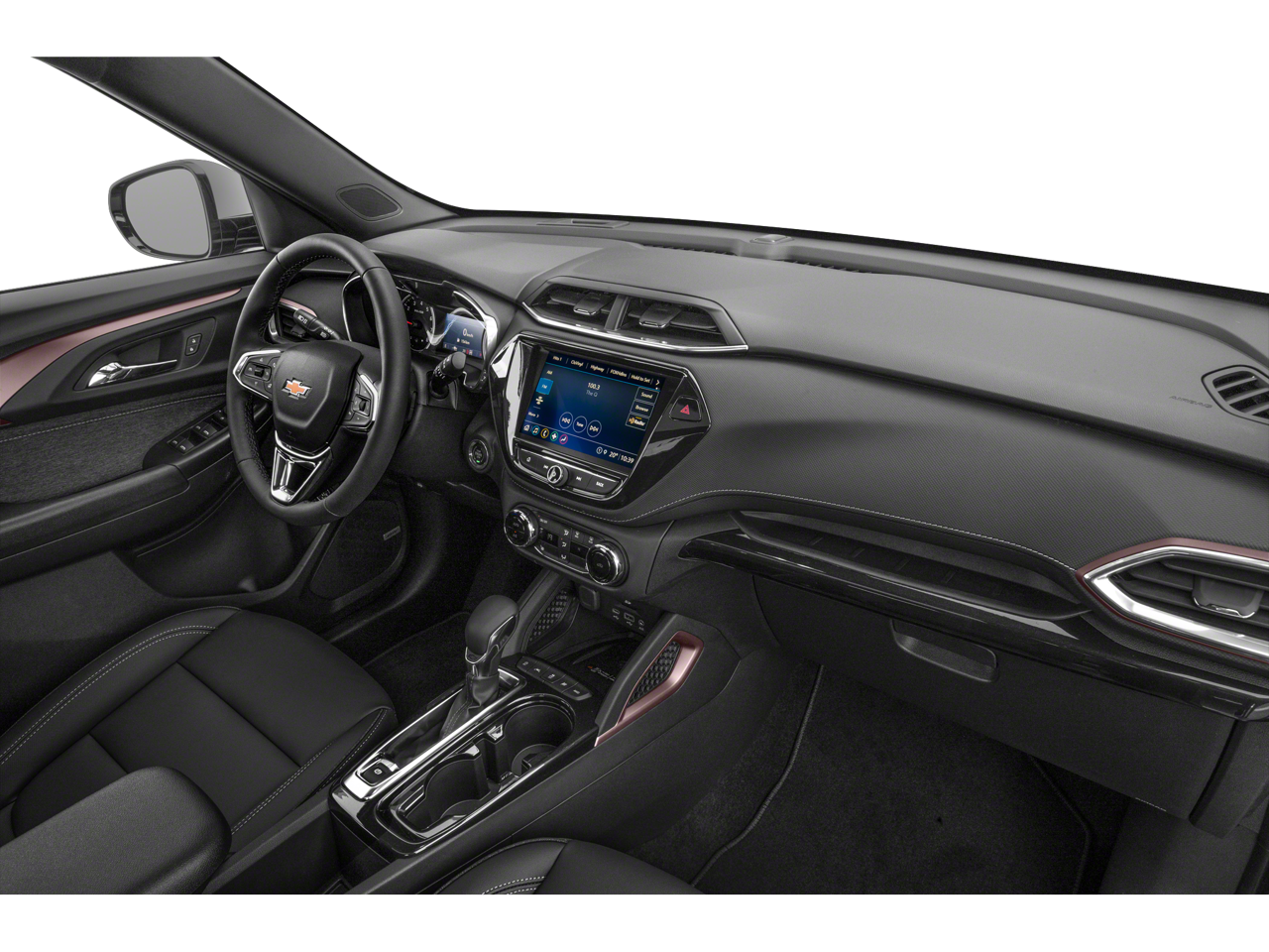 Designed to impress, the TrailBlazer ACTIV boasts a striking exterior with bold styling cues, including a distinctive front grille, sleek LED lighting, and 17-inch high-gloss black machined aluminum wheels. The Summit White roof adds a touch of sophistication, while the body-color bumpers and power-adjustable heated side mirrors ensure a cohesive, premium appearance.