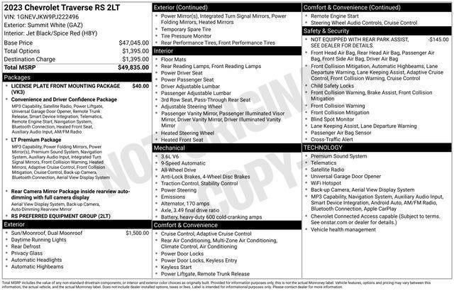 The 2023 Chevrolet Traverse RS is waiting for you. Experience the perfect combination of power, comfort, and advanced features that will elevate your driving experience. Contact us today to schedule a test drive and see why the Traverse RS is the perfect choice for your next family vehicle.