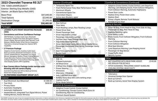 The 2023 Chevrolet Traverse RS is a striking and versatile SUV that offers the perfect blend of style, capability, and technology. With its bold exterior design, spacious interior, and impressive performance, this vehicle is an exceptional choice for the discerning driver.