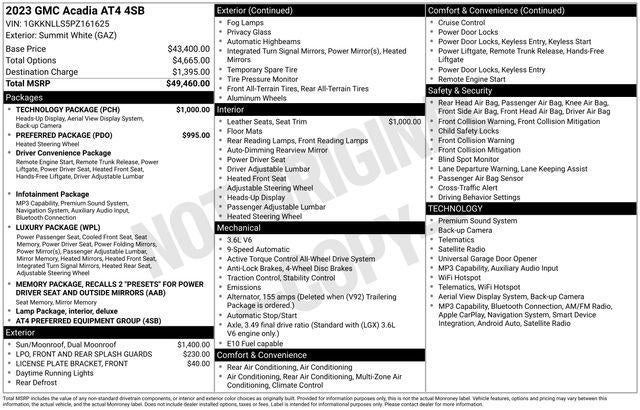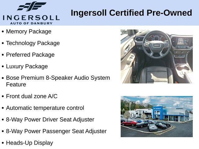 Discover the pinnacle of modern SUV design and capability with the 2023 GMC Acadia AT4. This striking and versatile vehicle is poised to elevate your driving experience, blending rugged off-road prowess with refined luxury and advanced technology.- Dual SkyScape 2-Panel Power Sunroof- Jet Black, Perforated Leather-Appointed Seat Trim- Technology Package with HD Surround Vision and Head-Up Display- Preferred Package with Luxury and Heated Steering WheelPowered by a robust 3.6L V6 SIDI engine and equipped with an advanced 9-speed automatic transmission and all-wheel drive, the Acadia AT4 delivers an exhilarating yet efficient performance, with an EPA-estimated 26 MPG highway. Elevate your journeys with the available Bose Premium 8-Speaker Audio System and seamless smartphone integration through Apple CarPlay and Android Auto.Designed to conquer the road less traveled, the Acadia AT4 boasts a suite of advanced safety features, including Forward Collision Alert, Automatic Emergency Braking, and Lane Keep Assist, ensuring you and your loved ones arrive at your destination with confidence. The available HD Surround Vision provides a 360-degree view, making parking and maneuvering a breeze.Step inside the refined cabin and experience the epitome of comfort and convenience. The heated and ventilated front seats, along with the heated steering wheel and rear outboard seating positions, create a sanctuary of warmth and relaxation. The Power Tilt and Telescopic Steering Column allows you to find your perfect driving position, while the 8-inch Multi-Color Enhanced Driver Information Display keeps you connected and informed.Whether you're embarking on a family adventure, tackling the great outdoors, or simply seeking a sophisticated and capable SUV, the 2023 GMC Acadia AT4 is the perfect companion. Schedule a test drive today and discover the ultimate blend of style, performance, and versatility.This vehicle is being sold as Ingersoll Certified Pre-Owned. This program gives you peace of mind. You will receive. **A Vehicle Inspection and Reconditioning Form. **A Vehicle Carfax. **90 Days or 3000 miles of Powertrain Plus Limited Coverage **A Free Maintenance event including oil change and tire rotation within the first 12mo or 12,000 miles of driving (at an Ingersoll Automotive Location). This vehicle is eligible to be upgraded to Ingersoll Certified Plus for $749. That will give you the additional benefits of 12mo or 12,000 miles of limited exclusionary coverage, 6 years or up to 100,000 miles of powertrain limited coverage (from original in-service date), courtesy transportation for covered repairs, and road side assistance. **A Vehicle Exchange Program if dissatisfied in the first 3 days or 150 miles of ownership. This is not a manufacturer sponsored program.Pre-Owned Vehicle Prices do not include government fees and taxes, any finance charges, $997 dealer documentation fees (Pawling Conveyance Fee capped at $175 per NY Law), any emissions testing fees or other fees. All prices, specifications and availability are subject to change without notice. The features and options listed are provided by a 3rd party organization and may not apply to this specific vehicle. Contact dealer for most current information. Not responsible for typographic errors.