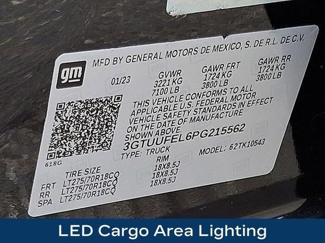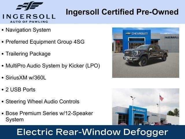 120-Volt Bed Mounted Power Outlet, 120-Volt Instrument Panel Power Outlet, 16-Way Power Driver Seat Adjuster w/Lumbar, 16-Way Power Passenger Seat Adjuster w/Lumbar, 2 Charge/Data USB Ports Inside Center Console, 2 Type-C Charge-Only Rear USB Ports, 2 USB Ports, Apple CarPlay/Android Auto, Auto High-beam Headlights, Bed View Camera, Bose Premium Series w/12-Speaker System, Color-Keyed Carpeting Floor Covering, Compass, Deep-Tinted Glass, Driver-Selectable Full-Locking Front Differential, Driver-Selectable Full-Locking Rear Differential, Electric Rear-Window Defogger, Electrical Steering Column Lock, Floor-Mounted Center Console, Front Prem Floor Liners w/Removable Carpet Insert, Front Rainsensing Wipers, Fully automatic headlights, Gloss Black Header w/Drk Nickel Grille Insert Bars, GMC Connected Access Capable, HD Surround Vision, Heated 2nd Row Outboard Seats, Heated Driver & Front Outboard Passenger Seating, Heavy-Duty Air Filter, Hill Descent Control, Hitch Guidance w/Hitch View, In-Vehicle Trailering App, Integrated Trailer Brake Controller, IntelliBeam Automatic High Beam On/Off, Keyless Open & Start, LED Cargo Area Lighting, Memory seat, Multicolor 15 Diagonal Head-Up Display, MultiPro Audio System by Kicker (LPO), Navigation System, OnStar & GMC Connected Services Capable, Perimeter Lighting, Power Door Locks, Power Front Passenger Windows w/Express Up/Down, Power Front Windows w/Driver Express Up/Down, Power Rake & Telescoping Steering Column, Power Rear Windows w/Express Down, Power Sliding Rear Window w/Rear Defogger, Power Sunroof, Preferred Equipment Group 4SG, Push Button Start, Rear Cross Traffic Braking, Rear Pedestrian Detection, Rear Prem Floor Liners w/Removable Carpet Insert, Rear Wheelhouse Liners, Remote Vehicle Starter System, Safety Alert Seat, SiriusXM w/360L, Spray-On Pickup Bed Liner w/AT4X Logo, Steering Wheel Audio Controls, Theft Deterrent System (Unauthorized Entry), Trailer Camera Provisions, Trailer Side Blind Zone Alert, Trailer Tire Pressure Monitor System, Trailering Package, Ultrasonic Front & Rear Park Assist, Universal Home Remote, Ventilated Driver & Front Passenger Seats, Wheels: 18 x 8.5 Gloss Black Painted Aluminum, Wi-Fi Hotspot Capable, Wireless Charging, Wireless Phone Projection.