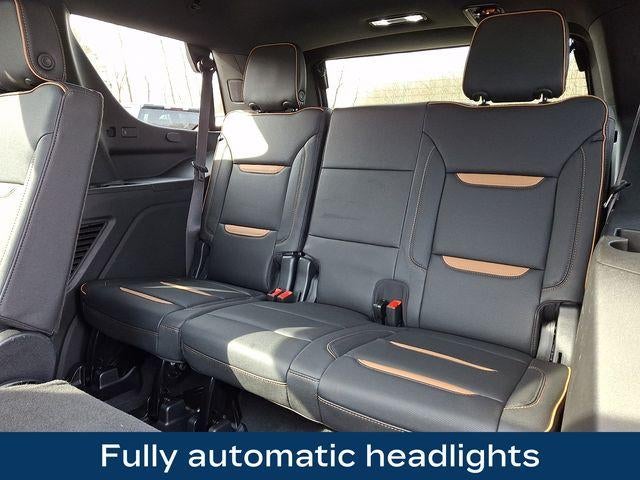 2 Presets For Outside Rearview Mirrors, 3 Years of GMC Connected Services, 3 Years of OnStar Safety & Security, 3rd Row 60/40 Power-Folding Split-Bench Seat, 9 Speakers, Apple CarPlay/Android Auto, Auto High-beam Headlights, Black Roof-Mounted Luggage Rack Side Rails, Bose 9-Speaker Stereo Audio System Feature, Bright Front & Rear Door Sill Plates, Front High-Approach Angle Fascia, Fully automatic headlights, Hands-Free Power Programmable Rear Liftgate, Heated & Ventilated Driver & Front Passenger Seats, Heated 2nd Row Outboard Position Seats, Heated Driver & Front Passenger Seats, Heated Steering Wheel, Heavy-Duty Air Filter, Hill Descent Control, Inside Rear-View Auto-Dimming Mirror, IntelliBeam Automatic High Beam On/Off, Lane Change Alert w/Side Blind Zone Alert, Memory seat, Navigation System, Outside Heated Power-Adjustable Mirrors, Power Liftgate, Power Release 2nd Row 60/40 Split-Folding Bench Seat, Power Tilt & Telescopic Steering Column, Preferred Equipment Group 4SB, Rain sensing wipers, Red Horizontal-Mounted Recovery Hooks, Safety Alert Seat, Universal Home Remote, Wheels: 20 x 9 6-Spoke Machined Aluminum, Wireless Charging.