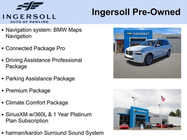 2nd Row Captain's Chairs, 3rd row seats: split-bench, 5-Zone Automatic Climate Control, Active Cruise Control w/Stop & Go, Active Driving Assistant Pro, Active Lane Keeping Assistant, Apple CarPlay & Android Auto Compatibility, Apple CarPlay Compatibility, Auto High-beam Headlights, Climate Comfort Package, Connected Package Pro, Drive Recorder, Driving Assistance Professional Package, Exterior Parking Camera Rear, Front & Rear Heated Seats, Front Ventilated Seats, Gesture Control, harman/kardon Surround Sound System, Head restraints memory, Heated front seats, Heated Multi-Contour Seats, Highway Assistant, Leather steering wheel, Memory seat, Navigation system: BMW Maps Navigation, Parking Assistance Package, Parking Assistant Professional, Power Front Seats, Power moonroof: Panorama, Premium Package, Rain sensing wipers, Rear Electric Side Window Shades, Reclining 3rd row seat, Remote keyless entry, SiriusXM w/360L & 1 Year Platinum Plan Subscription, Soft-Close Automatic Doors, Surround View w/3D View, Traffic Jam Assistant, Wheels: 21 x 9.5 Y-Spoke Bi-Color.