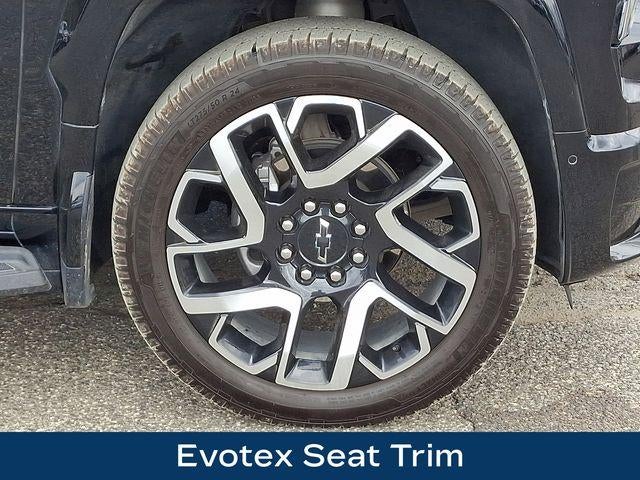 The Silverado EV RST's bold and distinctive styling is sure to turn heads wherever you go. With its sleek, aerodynamic lines and striking 24 carbon flash metallic aluminum wheels, this vehicle exudes a commanding presence on the road. The front and rear adaptive air ride suspension further enhances the vehicle's dynamic capabilities, providing a smooth and comfortable ride.