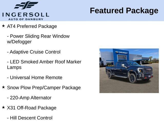 This Sierra 2500HD AT4 is more than just a work truck – it's a true off-road champion, ready to tackle the toughest challenges with confidence and style. The rugged X31 Off-Road Package, featuring an off-road-tuned suspension and skid plates, ensures you can conquer any terrain with ease.