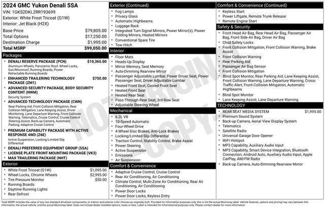 Clean CARFAX.White Frost Tricoat 2024 GMC Yukon Denali 4D Sport Utility 4WD EcoTec3 6.2L V8 10-Speed Automatic with OverdriveDo not hesitate, call us now at 860.945.4755 to speak with our guest friendly product consultants to schedule your test drive.Pre-Owned Vehicle Prices do not include government fees and taxes, any finance charges, $997 dealer documentation fees (Pawling Conveyance Fee capped at $175 per NY Law), any emissions testing fees or other fees. All prices, specifications and availability are subject to change without notice. The features and options listed are provided by a 3rd party organization and may not apply to this specific vehicle. Contact dealer for most current information. Not responsible for typographic errors.