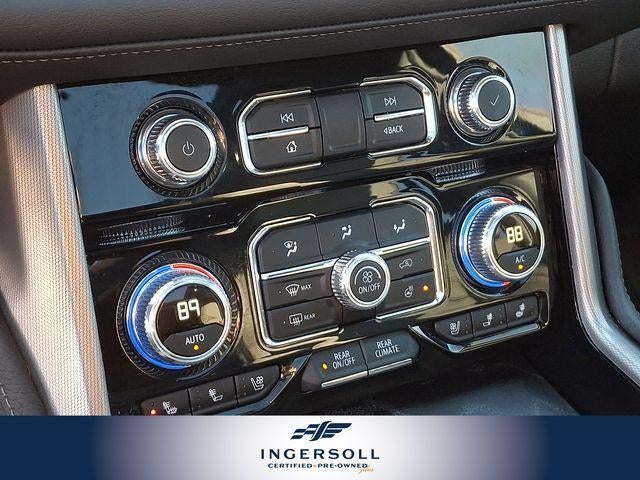 Step inside the Yukon Denali and be greeted by a cabin that redefines luxury. Indulge in the comfort of the perforated heated and ventilated front seats, while the Dual-Pane Panoramic Power Sunroof floods the interior with natural light. The Bose 14-speaker surround sound system and Heads-Up Display provide an immersive and cutting-edge driving experience.
