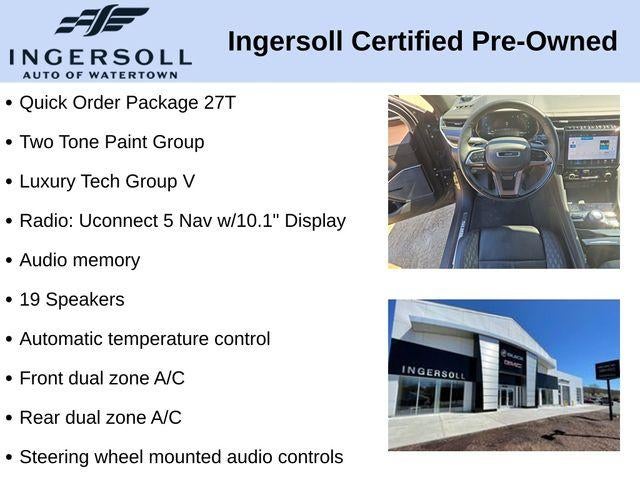 Elevate your driving experience with the 2024 Jeep Grand Cherokee 4xe Summit. This exceptional hybrid SUV combines uncompromising capability, refined luxury, and cutting-edge technology, making it the ultimate choice for the discerning driver.Outfitted with a host of premium features, this Grand Cherokee 4xe Summit stands out from the crowd. Key highlights include:- Wireless Charging Pad- 2nd-Row Manual Window Shades- Front Passenger Interactive Display- 19-Speaker Premium Audio System- Nappa Leather Seating- Heated and Ventilated Front Seats- Heated Rear Seats- Power Liftgate- Adaptive Suspension- Auto-Leveling SuspensionBeneath the elegant exterior, this Jeep is powered by a potent 2.0L I4 DOHC engine paired with an 8-speed automatic transmission and robust 4-wheel-drive system. With its impressive hybrid capabilities, the Grand Cherokee 4xe delivers exceptional efficiency without compromising on performance.Slip behind the wheel and experience the unparalleled refinement of this Summit model. The cabin is swathed in premium materials, including genuine wood accents and a luxurious Nappa leather-wrapped steering wheel. The advanced Uconnect 5 infotainment system with a 10.1-inch display keeps you connected and entertained on every journey.Safety and technology work in harmony, with features like Adaptive Cruise Control, Blind Spot Monitoring, and Automatic Emergency Braking ensuring a confident, secure driving experience. The available Front Passenger Interactive Display adds a unique touch, allowing your front passenger to engage with the vehicle's functions.Whether you're embarking on a family adventure or seeking a sophisticated daily driver, the 2024 Jeep Grand Cherokee 4xe Summit is the perfect companion. Experience the pinnacle of Jeep's legendary capability, combined with unmatched luxury and innovation. Visit our showroom today to take this exceptional SUV for a test drive and discover the difference for yourself.This vehicle is being sold as Ingersoll Certified Pre-Owned. This program gives you peace of mind. You will receive. **A Vehicle Inspection and Reconditioning Form. **A Vehicle Carfax. **90 Days or 3000 miles of Powertrain Plus Limited Coverage **A Free Maintenance event including oil change and tire rotation within the first 12mo or 12,000 miles of driving (at an Ingersoll Automotive Location). This vehicle is eligible to be upgraded to Ingersoll Certified Plus for $749. That will give you the additional benefits of 12mo or 12,000 miles of limited exclusionary coverage, 6 years or up to 100,000 miles of powertrain limited coverage (from original in-service date), courtesy transportation for covered repairs, and road side assistance. **A Vehicle Exchange Program if dissatisfied in the first 3 days or 150 miles of ownership. This is not a manufacturer sponsored program.Pre-Owned Vehicle Prices do not include government fees and taxes, any finance charges, $997 dealer documentation fees (Pawling Conveyance Fee capped at $175 per NY Law), any emissions testing fees or other fees. All prices, specifications and availability are subject to change without notice. The features and options listed are provided by a 3rd party organization and may not apply to this specific vehicle. Contact dealer for most current information. Not responsible for typographic errors.