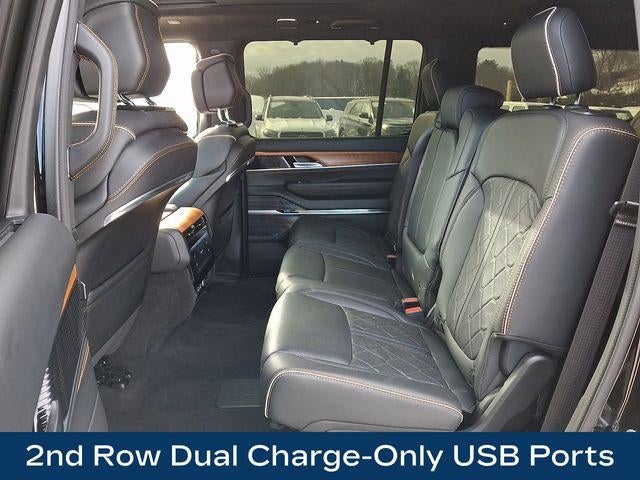 Beneath the sculpted hood, a potent 3.0L I6 engine paired with an 8-speed automatic transmission delivers a thrilling and efficient driving experience. With 4-wheel drive capability, the Grand Wagoneer is ready to tackle any road or terrain with confidence, whether you're navigating the city streets or embarking on a weekend adventure.