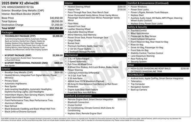 Experience the ultimate in luxury and performance with this stunning 2025 BMW X2 xDrive28i. Meticulously crafted with the discerning driver in mind, this compact SUV delivers a thrilling driving experience that will leave you captivated from the moment you take the wheel.