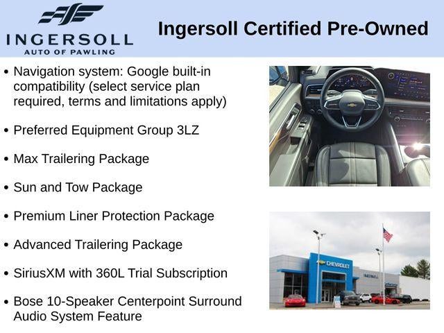 15 Diagonal Multi-Color Head-Up Display, 1st and 2nd Row Color-Keyed Carpeted Floor Mats, 2-Speed Active Electronic AutoTrac Transfer Case, 3-Spoke Wrapped Steering Wheel, 3rd Row 60/40 Power-Folding Split-Bench Seat, 3rd Row All-Weather Floor Liners, 8-Way Power Driver Seat Adjuster, 8-Way Power Front Passenger Seat Adjuster, Advanced Trailering Package, All-Weather Cargo Mat, Auto High-beam Headlights, Blind Zone Steering Assist with Trailering, Bose 10-Speaker Centerpoint Surround Audio System Feature, Bright Front and Rear Door Sill Plates, Chrome Door Handles with Body-Color Strip, Color-Keyed Carpeting Floor Covering, Dual Exhaust System, Dual-Pane Power Panoramic Sunroof, First and Second Rows Premium Floor Liners, Floor Console, Front Bucket Seats, Front LED Fog Lamps, Front Pedestrian and Bicyclist Braking, Frontal Driver and Outboard Passenger Airbags, Heads-Up Display, Heated 2nd Row Outboard Seats, Heated Driver and Front Passenger Seats, Heated rear seats, Heated Steering Wheel, Hill Descent Control, Hitch View with Pan/Zoom Image Adjustment, Inside Rearview Auo-Dimming Rear Camera Mirror, Integrated Trailer Brake Controller, LED Headlamps with LED Daytime Running Lamps, LED Tail Lamps, Magnetic Ride Control Suspension, Max Trailering Package, Memory Settings, Navigation system: Google built-in compatibility (select service plan required, terms and limitations apply), Outside Heated Power-Adjustable Mirrors, Power Release 2nd Row Bucket Seats, Power Tilt and Telescopic Steering Column, Preferred Equipment Group 3LZ, Premium Liner Protection Package, Rear Power Liftgate, Remote Start, SiriusXM with 360L Trial Subscription, Smart Trailer Integration Indicator, Sun and Tow Package, Universal Home Remote, Wheels: 22 x 9 Bright Machined Aluminum, Wireless Phone Charging.