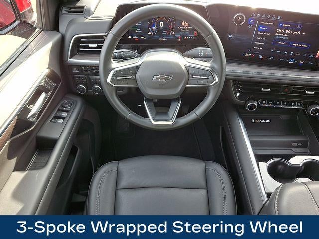 2-Speed Active Electronic AutoTrac Transfer Case, 2-Way Power Driver Lumbar Seat Adjuster, 2-Way Power Front Passenger Lumbar Seat Adjuster, 3-Spoke Wrapped Steering Wheel, 3rd Row Manual 60/40 Split-Folding Bench Seats, 6-Speaker Audio System Feature, 8-Way Power Driver Seat Adjuster, 8-Way Power Front Passenger Seat Adjuster, Apple CarPlay/Android Auto, Auto High-beam Headlights, Auto-Dimming Inside Rear-View Mirror, Black Tubular Assist Steps, Color-Keyed Carpeting Floor Covering, Dual Exhaust System, Exterior Parking Camera Rear, Front High-Approach Angle Fascia, Front LED Fog Lamps, Heated door mirrors, Hill Descent Control, Leather-Appointed Seat Trim, License Plate Front Mounting Package, Memory seat, Navigation system: Google built-in compatibility (select service plan required, terms and limitations apply), Preferred Equipment Group 2Z7, Radio: 17.7 Diagonal Advanced Color LCD Display, Rain sensing wipers, Rear Power Liftgate, Red Horizontal-Mounted Recovery Hooks, Remote keyless entry, Remote Start, Universal Home Remote, USB Ports, Wheels: 20 x 9 Bright Machined Aluminum, Wireless Phone Charging, Z71 Exterior Features.