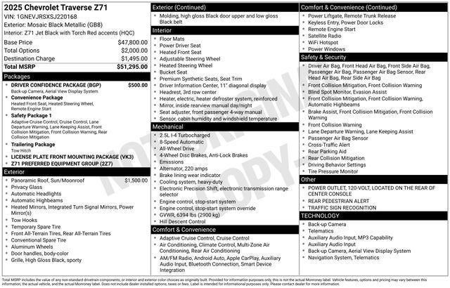 Mosaic Black Metallic 2025 Chevrolet Traverse Z71 4D Sport Utility AWD 2.5L DOHC 8-Speed Automatic