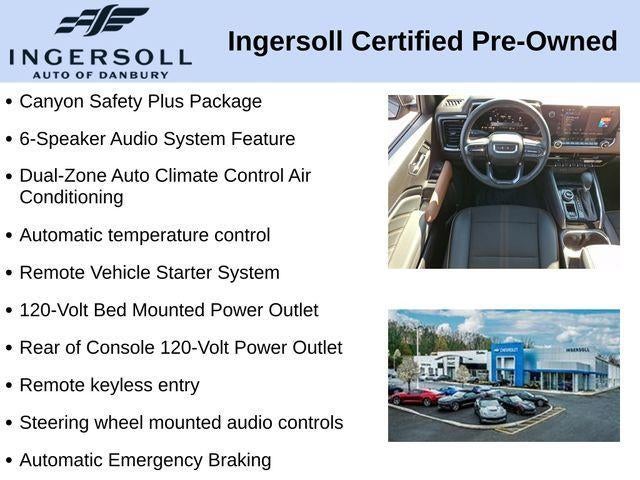 Discover the ultimate off-road companion in the 2025 GMC Canyon AT4. This rugged and capable midsize truck is engineered to conquer any terrain, delivering exceptional performance and uncompromising style.Equipped with a potent 2.7L I4 Turbocharged engine producing a thrilling 310 horsepower, the Canyon AT4 offers the perfect blend of power and efficiency. Paired with an 8-speed automatic transmission and 4-wheel drive, this truck is ready to tackle any challenge, whether you're navigating winding mountain roads or venturing off the beaten path.- Navigation System- Canyon Safety Plus Package- 6-Speaker Audio System- Dual-Zone Automatic Climate Control- 120-Volt Bed-Mounted Power Outlet- 8-Way Power Driver's Seat- Off-Road Suspension- Automatic Emergency Braking- Front Pedestrian & Bicyclist Braking- Wireless Apple CarPlay/Android AutoThe 2025 GMC Canyon AT4 is more than just a capable off-road machine; it's a true expression of your adventurous spirit. With its striking Silver exterior and rugged good looks, this truck commands attention wherever it goes. The available custom features, including the Canyon Safety Plus Package and premium infotainment system, elevate the driving experience to new heights, ensuring you stay connected, entertained, and secure on every journey.Step inside the Canyon AT4, and you'll be surrounded by a cabin that blends comfort, technology, and convenience. Heated front seats, a power driver's seat with lumbar support, and a heated steering wheel ensure you'll enjoy every mile in exceptional comfort. The spacious interior and versatile cargo bed provide ample room for all your gear, making this truck the perfect companion for your next outdoor excursion.Safety is a top priority in the 2025 GMC Canyon AT4, with a comprehensive suite of advanced driver assistance technologies. Features like Forward Collision Alert, Lane Keep Assist, and Rear Cross Traffic Braking work together to help keep you and your passengers protected on the road.Whether you're seeking a capable work truck, a versatile adventure vehicle, or a stylish daily driver, the 2025 GMC Canyon AT4 is the perfect choice. Experience the power, capability, and refined sophistication that this exceptional midsize truck has to offer. Visit our showroom today and let us demonstrate why the Canyon AT4 is the ultimate choice for those who demand more from their vehicle.This vehicle is being sold as Ingersoll Certified Pre-Owned. This program gives you peace of mind. You will receive. **A Vehicle Inspection and Reconditioning Form. **A Vehicle Carfax. **90 Days or 3000 miles of Powertrain Plus Limited Coverage **A Free Maintenance event including oil change and tire rotation within the first 12mo or 12,000 miles of driving (at an Ingersoll Automotive Location). This vehicle is eligible to be upgraded to Ingersoll Certified Plus for $749. That will give you the additional benefits of 12mo or 12,000 miles of limited exclusionary coverage, 6 years or up to 100,000 miles of powertrain limited coverage (from original in-service date), courtesy transportation for covered repairs, and road side assistance. **A Vehicle Exchange Program if dissatisfied in the first 3 days or 150 miles of ownership. This is not a manufacturer sponsored program.Pre-Owned Vehicle Prices do not include government fees and taxes, any finance charges, $997 dealer documentation fees (Pawling Conveyance Fee capped at $175 per NY Law), any emissions testing fees or other fees. All prices, specifications and availability are subject to change without notice. The features and options listed are provided by a 3rd party organization and may not apply to this specific vehicle. Contact dealer for most current information. Not responsible for typographic errors.