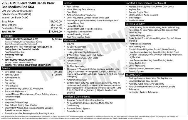 - Onyx Black exterior with the Denali Reserve Package, including the Technology Package, sunroof, and 22-inch Painted Aluminum Wheels