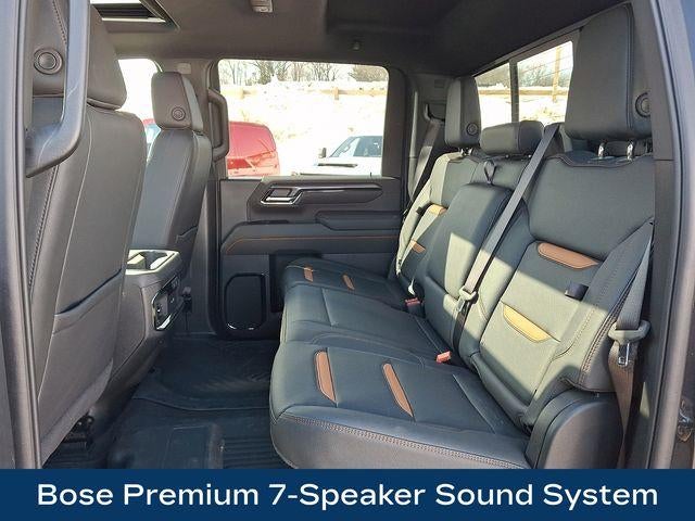 120-Volt Bed Mounted Power Outlet, 120-Volt Instrument Panel Power Outlet, 2 Charge-Only Rear USB Ports, 2 Charge/Data USB Ports Inside Center Console, 2 USB Ports, 2-Speed Active Transfer Case, AT4 Preferred Package, AT4 Premium Plus Package, Auto High-beam Headlights, Bed View Camera w/2 Trailer Camera Provisions, Bose Premium 7-Speaker Sound System, Deep-Tinted Glass, Electric Rear-Window Defogger, Floor-Mounted Center Console, Front Prem Floor Liners w/Removable Carpet Insert, Front Rain-Sensing Wipers, Gloss Black Header Grille & Grille Insert Bars, Gooseneck/5th Wheel Prep Package, HD Surround Vision, Heated 2nd Row Outboard Seats, Heated Driver & Front Outboard Passenger Seats, Keyless Open & Start, LED Cargo Area Lighting, LED Smoked Amber Roof Marker Lamps, Manual Tilt-Wheel/Telescoping Steering Column, Off-Road High Clearance Step (LPO), OnStar Services Capable, Power Front Passenger Windows w/Express Up/Down, Power Sliding Rear Window w/Defogger, Power Sunroof, Preferred Equipment Group 4SB, Push Button Start, Rear Cross Traffic Alert, Rear Prem Floor Liners w/Removable Carpet Insert, Rear Wheelhouse Liners, Remote Vehicle Starter System, Safety Alert Seat, SiriusXM w/360L Trial Subscription, Spray-On Pickup Bedliner w/GMC Logo, Steering Wheel Audio Controls, Technology Package, Trailer Cam Provisions & Trailer Viewing Software, Trailer Side Blind Zone Alert, Ultrasonic Front & Rear Park Assist, Unauthorized Entry Theft-Deterrent System, Universal Home Remote, Ventilated Driver & Front Passenger Seats, Wireless Charging, Wireless Phone Projection, X31 Off-Road Package.