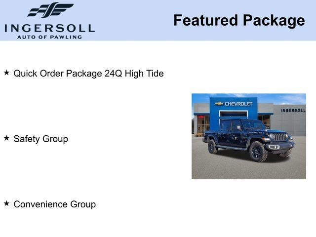Priced below KBB Fair Purchase Price! Odometer is 1925 miles below market average! CARFAX One-Owner. Clean CARFAX.110 MPH Vehicle Max Speed Calibration, 12.3 Touchscreen Display, 97 MPH Vehicle Max Speed Calibration, Advanced Brake Assist, Apple CarPlay/Android Auto, Auto High Beam Headlamp Control, Automatic Headlamps, Blind Spot & Cross Path Detection, Body Color 3-Piece Hard Top, Body Color Fender Flares (2-Piece), Convenience Group, Corning Gorilla Glass, Daytime Running Lamp System, Deep Tint Sunscreen Windows, Emergency/Assistance Call, Front Center Armrest w/Storage, Front Door Locks 2-Door Passive Entry, Full Length Floor Console Premium Armrest, Full Speed Forward Collision Warning Plus, Hard Seat Back, Heated Front Seats, Heated Steering Wheel, High Tide, High Tide Tailgate & Hood Decals, Integrated Radar Camera Module (IRCM), Leather Wrapped Park Brake Handle, Leather Wrapped Shift Knob, LED Taillamps, MOPAR All-Weather Slush Mats, ParkSense Rear Park Assist System, Power 4-Way Driver Lumbar Adjust, Power 4-Way Passenger Lumbar Adjust, Power Adjust 8-Way Driver Seat, Power Adjust 8-Way Front Passenger Seat, Power Heated Mirrors, Premium Door Trim Panel, Premium McKinley Trimmed Seats, Premium Wrapped Steering Wheel, Quick Order Package 24Q High Tide, Radio: Uconnect 5 w/12.3 Display, Rear Armrest w/Cupholder Seat, Remote Start System, Safety Group, Security Alarm, Sun Visors w/Illuminated Vanity Mirrors, Universal Garage Door Opener, Wheels: 17 x 7.5 Painted Black, Willys Suspension.Black Clearcoat 2025 Jeep Gladiator High Tide 4D Crew Cab 4WD 3.6L V6 24V VVT 8-Speed AutomaticCertification Program Details: This vehicle is being sold as Ingersoll Certified Pre-Owned. This program gives you piece of mind. You will receive. **A Vehicle Inspection and Reconditioning Form. **A Vehicle Carfax. **90 Days or 4000 miles of Powertrain Plus Limited Coverage **A Free Maintenance event including oil change and tire rotation within the first 12mo or 12,000 miles of driving (at an Ingersoll Automotive Location). This vehicle is eligible to be upgraded to Ingersoll Certified Plus for $749. That will give you the additional benefits of 12mo or 12,000 miles of limited exclusionary coverage, 6 years or up to 100,000 miles of powertrain limited coverage (from original in-service date), courtesy transportation for covered repairs, and road side assistance. **A Vehicle Exchange Program if dissatisfied in the first 3 days or 150 miles of ownership. This is not a manufacturer sponsored programDo not hesitate, call us now at 845.878.6900 to speak with our guest friendly product consultants to schedule your test drive.Pre-Owned Vehicle Prices do not include government fees and taxes, any finance charges, $175 dealer documentation fees (Danbury and Watertown Conveyance Fee at $997), any emissions testing fees or other fees. All prices, specifications and availability are subject to change without notice. The features and options listed are provided by a 3rd party organization and may not apply to this specific vehicle. Contact dealer for most current information. Not responsible for typographic errors.